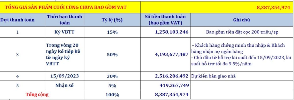 Thanh toán Đợt 1 chỉ 15% tương đương 1,5 Tỷ sở hữu ngay căn Biệt thự Golf.
