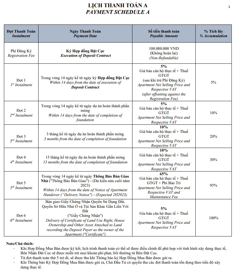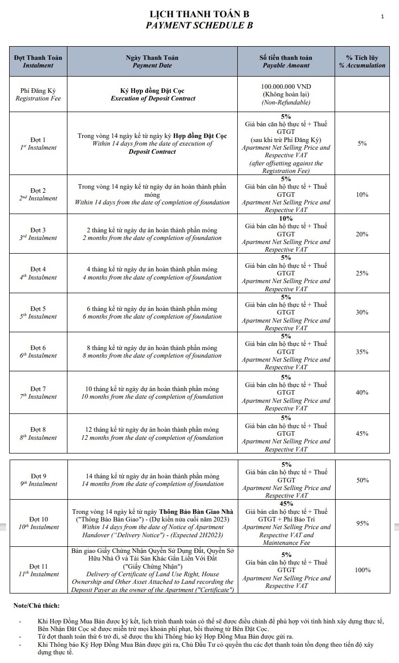 Căn hộ Celesta Rise hiện sở hữu được lịch thanh toán khá giãn khách hàng chọn 1 trong 2 phương thức thanh toán. Được chia làm 11 đợt. Thời điểm ký hợp đồng mua bán là 20% giá trị nhà phố celesta evenue. Nhận nhà thanh toán 55% hoạt 65%