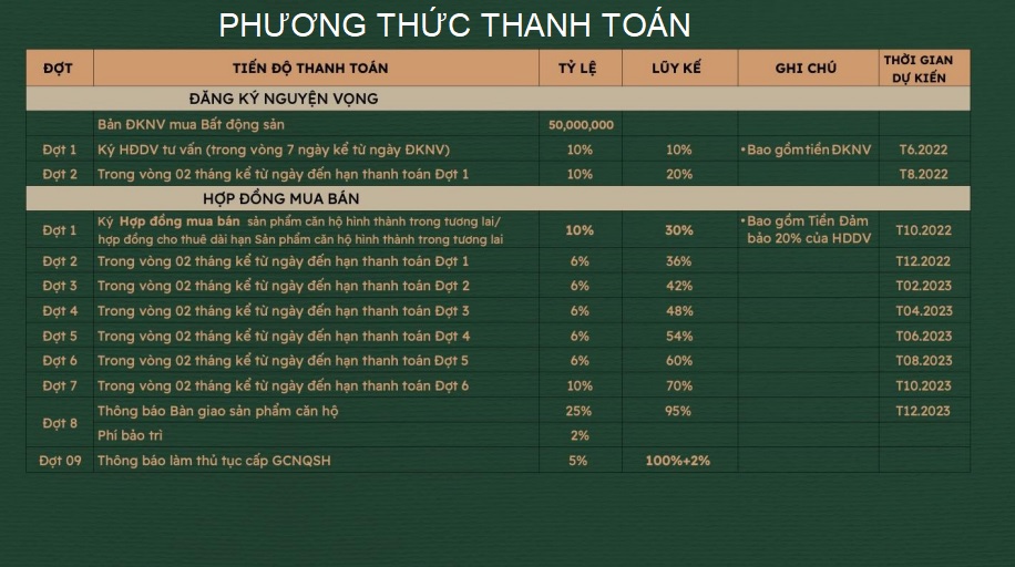Căn hộ Shizen Home Quận 7 hiện sở hữu được lịch thanh toán khá giãn. Được chia làm nhiều đợt. Thời điểm ký hợp đồng mua bán là 20% giá trị căn hộ. chủ đầu tư hổ trợ lãi suất đến nhận nhà.