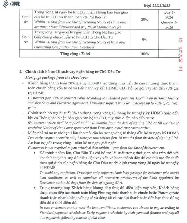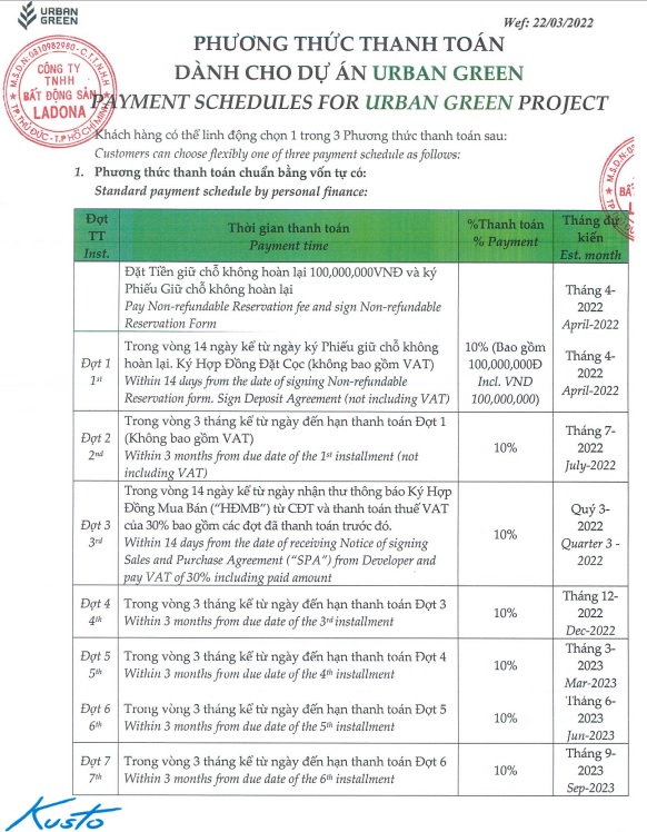 PTTT Căn Hộ Urban Green Quốc Lộ 13