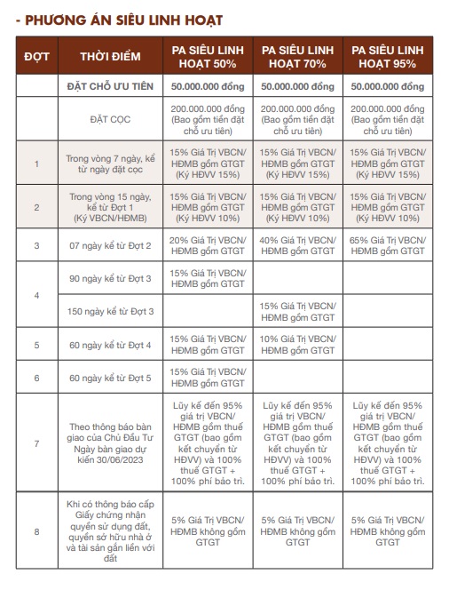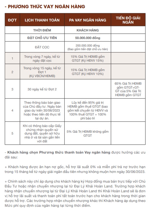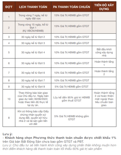 Nhận nhà vào quí III/2022 và khi nhận sổ thanh toán 5%